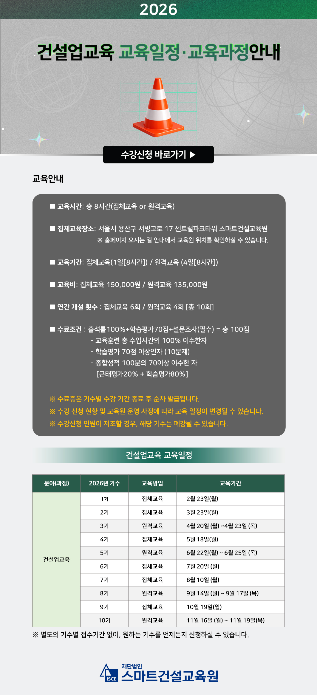 (교육일정 ·교육과정 안내) 2026년 건설업교육