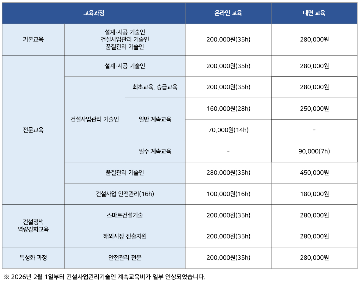 건설업교육 과정 안내
